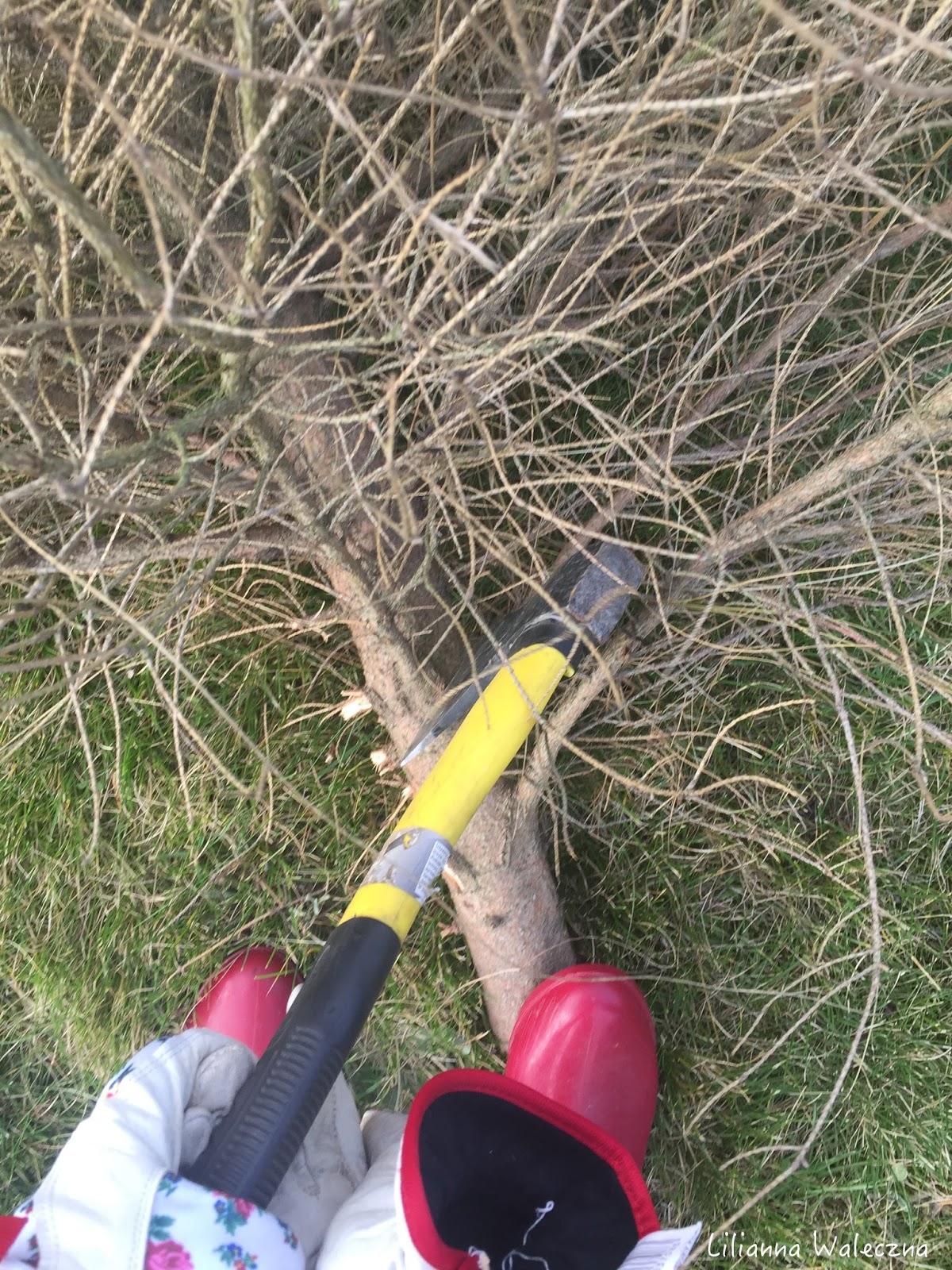 | Najpierw tata rąbał drzewo na ognisko |